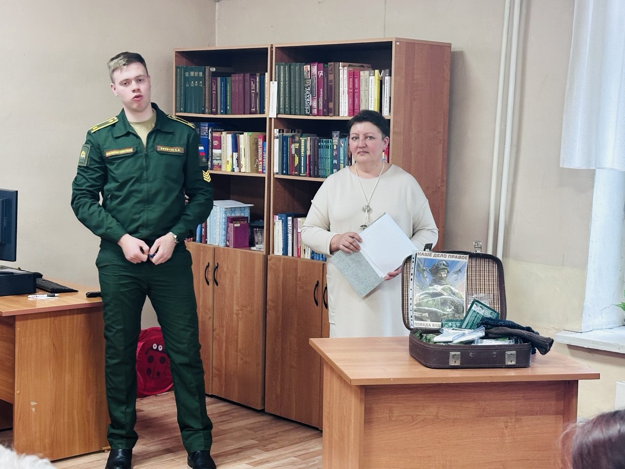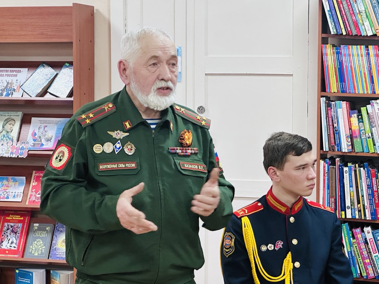Встречи с кадетами в библиотеке – это многолетняя добрая традиция. Гостями приема стали полковник Казаков Василий Петрович – ветеран боевых действий, почетный ветеран г. Кемерово, кавалер ордена Мужества; подполковник Веселов Вадим Владимирович – ветеран боевых действий помощник командира войсковой части 6607 по работе с ветеранами; Цветкова Людмила Владимировна – мать Героя РФ Цветкова Сергея Евгеньевича, а также советник директора по воспитанию МБОУ «Средняя общеобразовательная школа № 90» Бакланова Надежда Сергеевна.